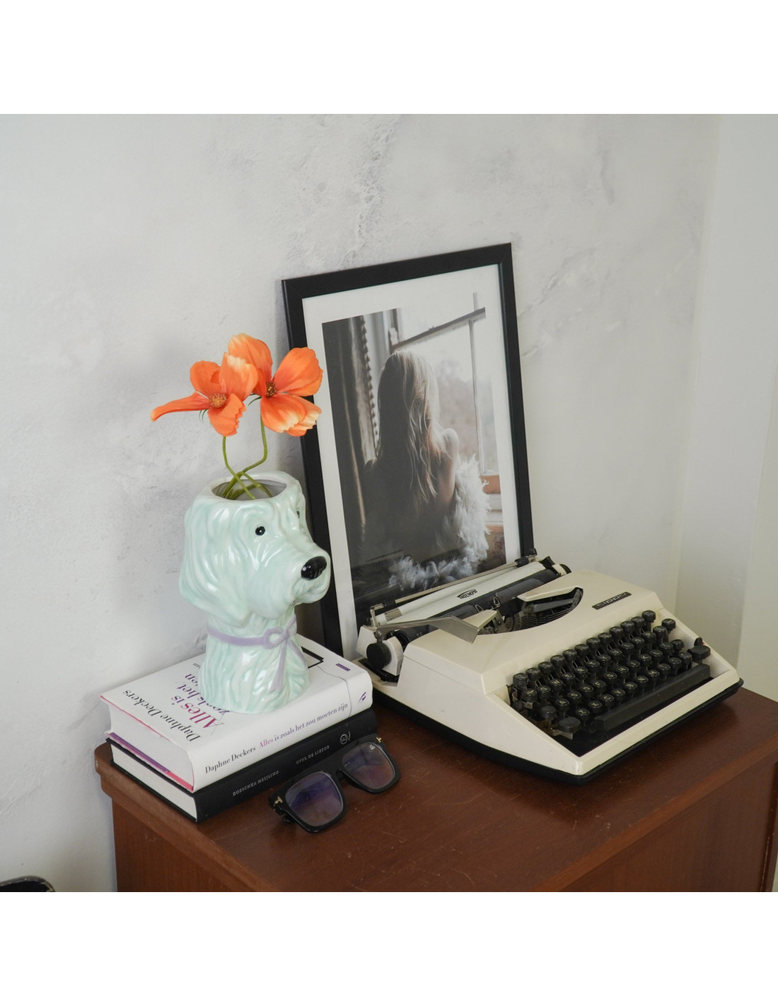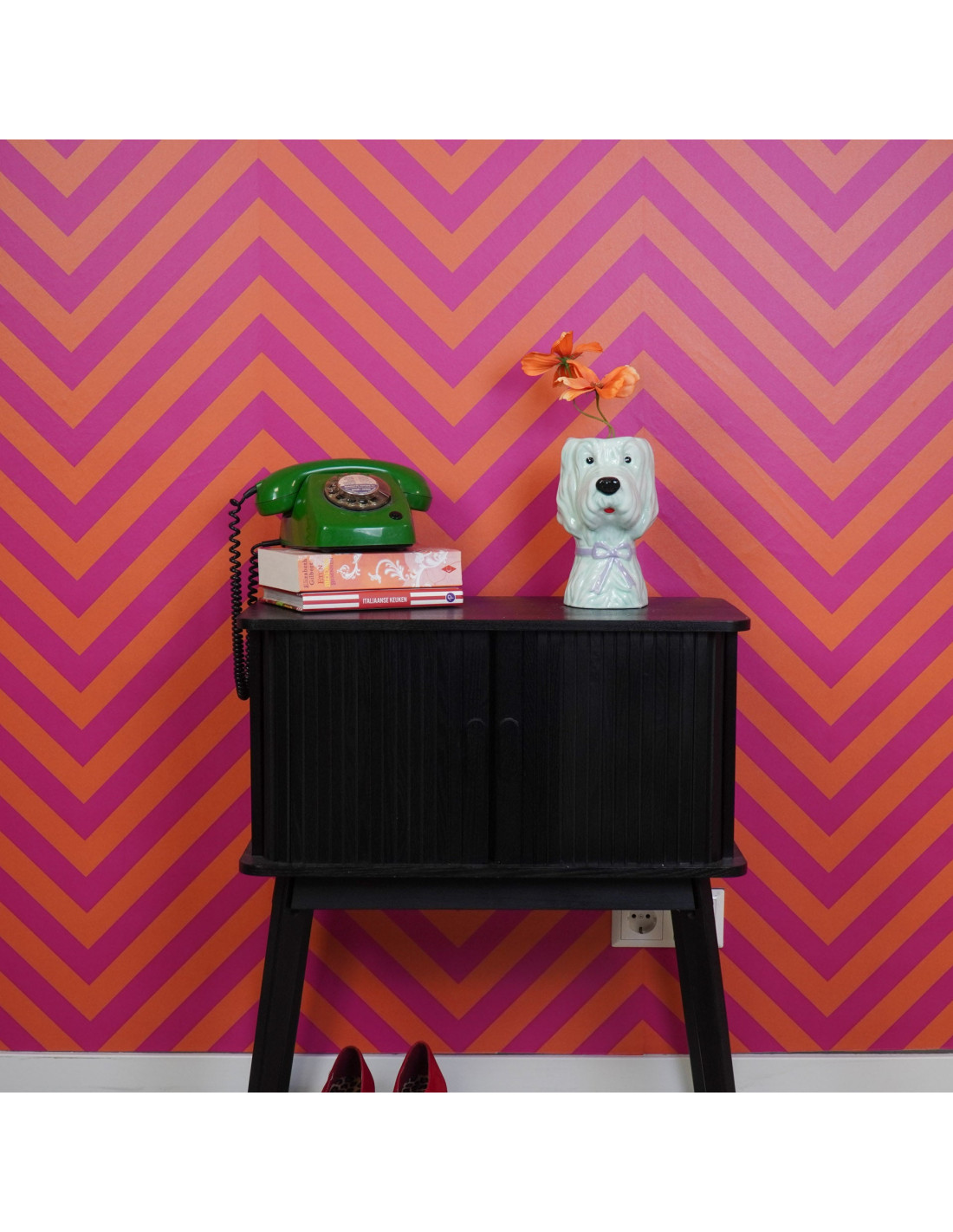 HousevitaminVous cherchez un accroche-regard joyeux pour votre intérieur ? Ce vase en forme de chien est garanti pour voler la vedette ! La combinaison ludique de vert menthe et de lilas donne à ce vase un look unique et moderne qui s'intègre parfaitement dans tout intérieur contemporain ou coloré. Fabriqué en dolomite robuste et avec une taille généreuse de 13x14x21cm, ce vase est idéal pour un bouquet somptueux ou quelques fleurs frappantes. Que vous soyez un amoureux des animaux, que vous souhaitiez égayer votre salon ou que vous recherchiez un cadeau original, ce vase chien apporte toujours un sourire et une atmosphère joyeuse à votre maison ! Caractéristiques principales : - Design original : forme de chien - Fabriqué en dolomite durable - Combinaison de couleurs tendance : vert menthe et lilas - Taille généreuse, adaptée aux grands bouquets - Également idéal comme objet décoratif sans fleurs - Dimensions : 13x14x21cm - Un accroche-regard ludique dans tout intérieur Conseil de style : Placez ce vase dans un endroit central, comme la table à manger, un buffet ou sur le rebord de la fenêtre. Remplissez-le de fleurs dans des teintes assorties comme le rose, l'orange et le jaune pour un look harmonieux, ou choisissez un bouquet vibrant pour souligner son caractère ludique. Combinez le vase avec d'autres accessoires colorés ou une décoration sur le thème des animaux pour une touche joyeuse et personnelle !